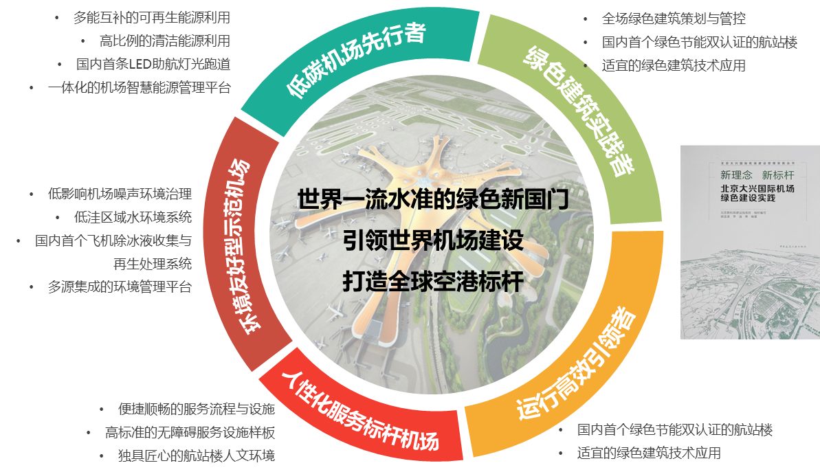 北京大兴国际机场是“十二五”“十三五”期间国家重点建设项目,是国家发展新的动力源,承载了中国民航迈向民航强国之路的期盼和决心,代表着北京、民航乃至国家的新形象。作为新国门,其建设规模和建设要求将集中反映时代特色和行业需求。北京大兴国际机场绿色建设,以实现“引领中国机场建设,打造全球空港标杆”为目标,全面实践绿色、低碳、可持续理念,用世界的眼光、世界的水准、世界的规则、世界的语言进行规划和建设。
