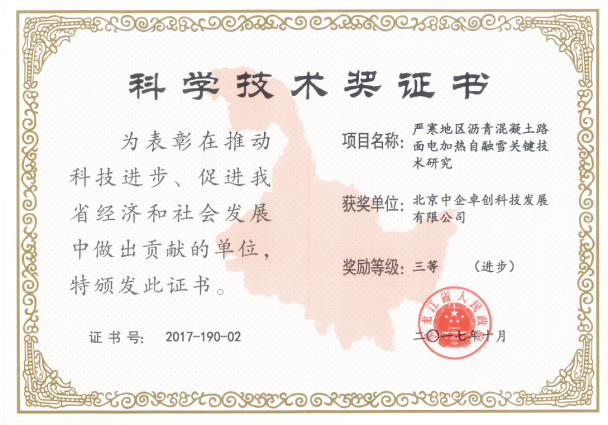 经民航局科技成果鉴定,项目科研成果填补了机场道面自动融雪除冰材料、技术领域的空白。研究成果总体达到国际领先水平。
