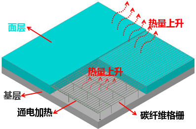 碳纤维格栅加热道面融雪技术是将碳纤维格栅和机场道面复合在一起,形成采用电加热道面方式的复合结构材料,通电升温至0℃以上,下雪时实现机场道面始终保持无冰雪状态,雪随下随化,无需扫雪,机场可24小时运行,不需停航。