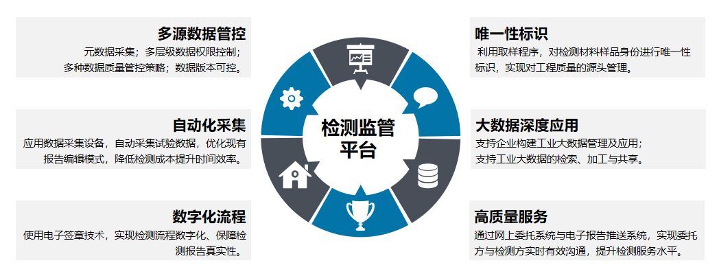 工程质量检测智慧管理系统是将计算机网络技术与现代的管理思想有机结合,利用快速数据处理技术、海量数据存储技术、宽带传输网络技术、自动化仪器分析技术、二维码防伪技术,来对实验室的信息管理和质量控制等进行全方位管理的计算机软、硬件系统,以满足实验室管理上的各种目标。